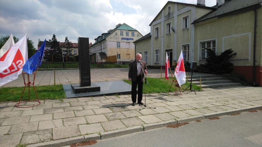 Po odśpiewaniu hymnu głos zabrał szef SLD w województwie łódzkim Tomasz Trela, który mówił, jak istotna jest walka o prawa pracownicze, przypomniał postulaty SLD w kwestiach pracowniczych, a wśród nich m.in. podwyższenie kwoty wolnej od podatku czy zrównanie najniższej emerytury i renty z płacą minimalną. Zwrócił także uwagę na protestujące w Sejmie matki i opiekunów osób z niepełnosprawnościami i ich walkę o godne życie. Przypomniał też, że to właśnie rząd SLD-UP 14 lat temu wprowadzał Polskę do Unii Europejskiej.