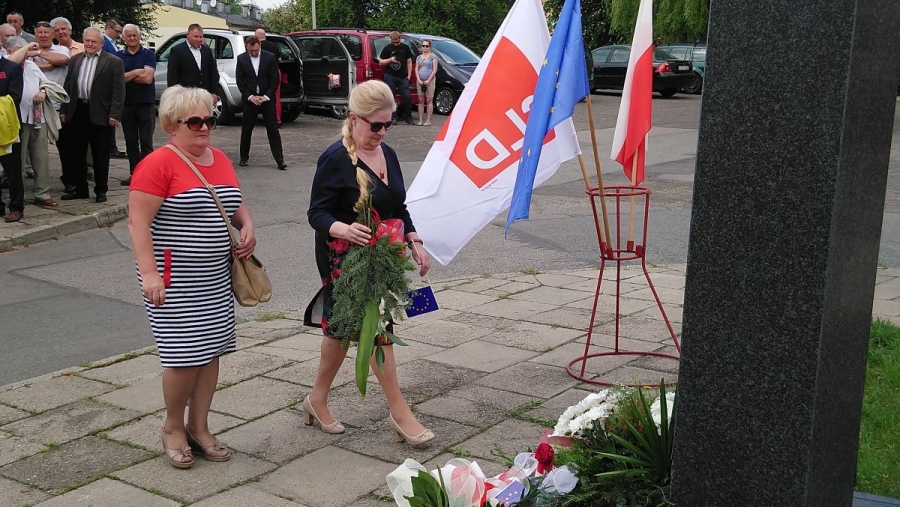 Po zakończeniu przemówień uczestnicy wiecu złożyli kwiaty pod Słupem Pamięci. Wśród składających była m.in. delegacje SLD ze Zgierza, powiatu zgierskiego i województwa łódzkiego - z przewodniczącym Tomaszem Trelą na czele - a także delegacje SLD z Aleksandrowa Łódzkiego i Ozorkowa oraz delegacje Ligii Kobiet Polskich, Forum Równych Szans i Praw Kobiet oraz Zgierskiego Uniwersytetu Trzeciego Wieku.